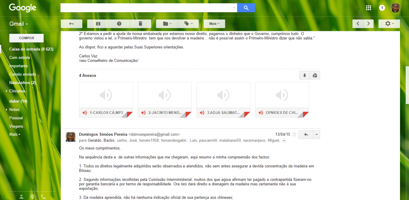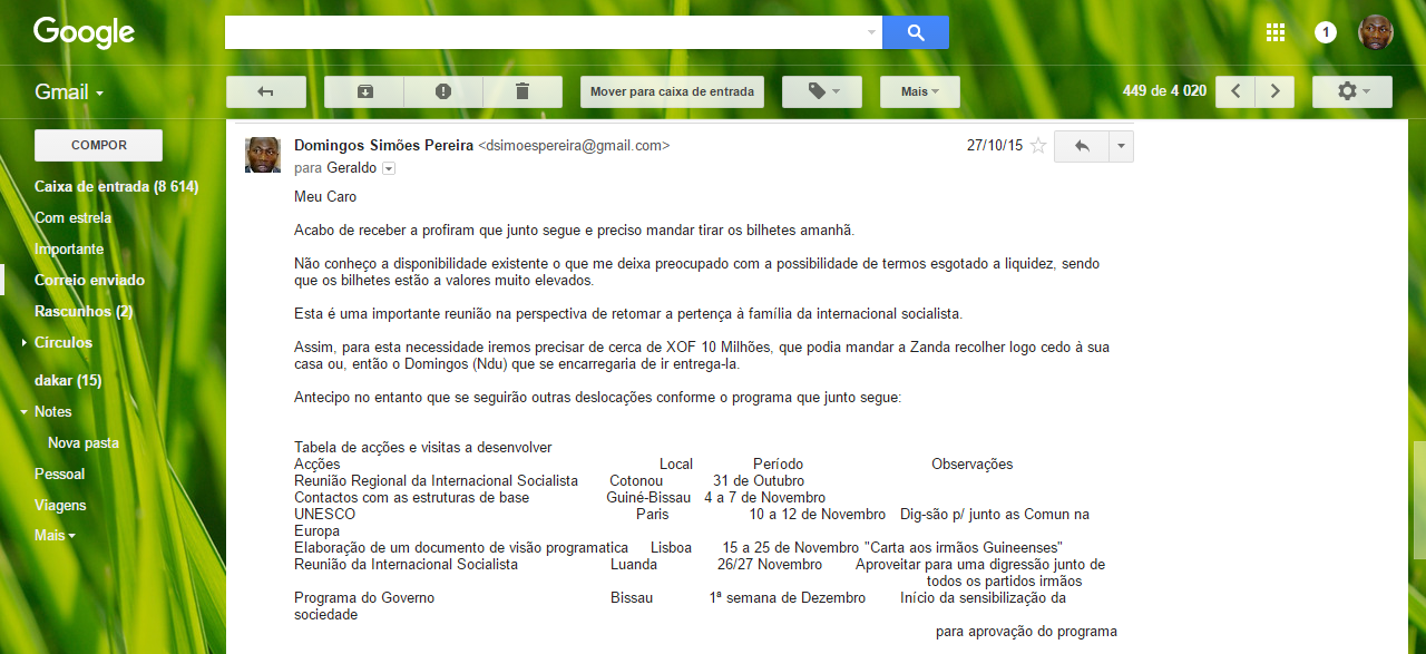 Lesmes Monteiro, uma imagem vale mil palavras, isto é só um aviso e o principio do começo da tua desgraça caso não deixar desse protagonismo todo como sempre habituaste. JBV "o teu tio" mandou-te apagar todas as vossa trocas de email a fim de TENTAR destruir as provas da vossa relação(relação caçador e o seu cão), só que já era tarde, tarde demais. Não tenho hora de começar a publicar aqui tudo que sei sobre o vosso "copy and paste" o vosso dito "livro" tu e o João Bernardo Vieira tudo depende do teu comportamento e também para o bem do próprio JBV.